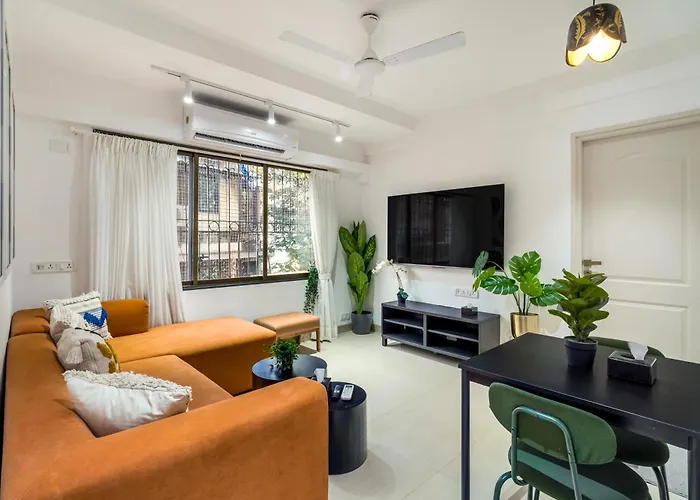 Spacious Aura 2Bhk Bandra W By The Bombay Home Company apartment is nestled in the Western Suburbs district, just moments from the pizzeria Pizza Metro Pizza.