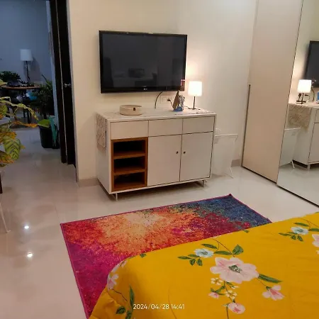 The 72 mยฒ apartment is 2.3 km from the Castella de Aguada and Chhatrapati Shivaji International airport is 15 minutesโ drive away. The Joggers' Park is also set approximately 20 minutes' walk away.